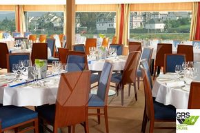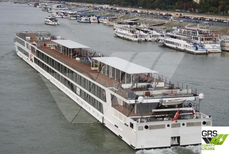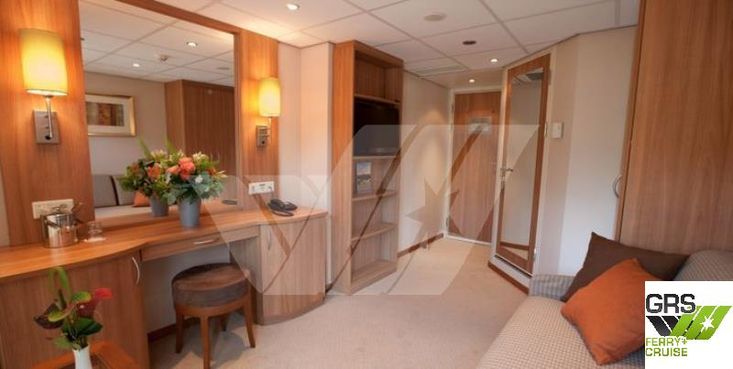 The ship is fitted with several suites and cabins with French balconies and single cabins. The ship has a beautiful and spacious lounge, a nice bar with large panoramic windows, a restaurant with an oval buffet.