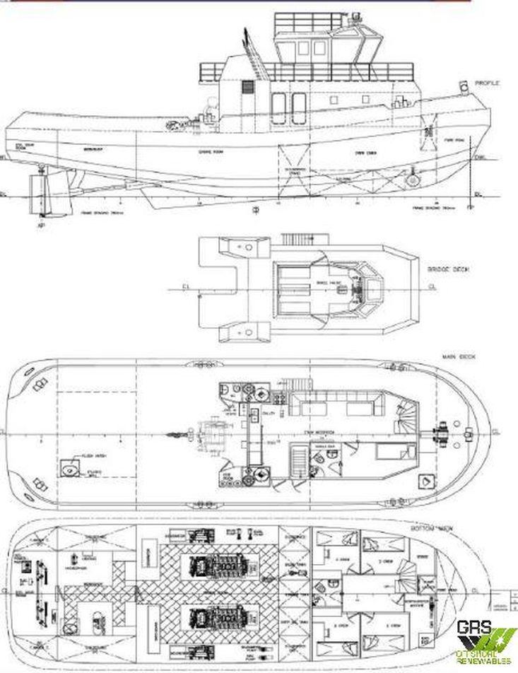 Engines : 2 x Baudouin / Baudouin Moteurs 12M26.2, 1,766 kw, 1,950 rpm, Propellers 1 x Port Side + 1 x Starboard