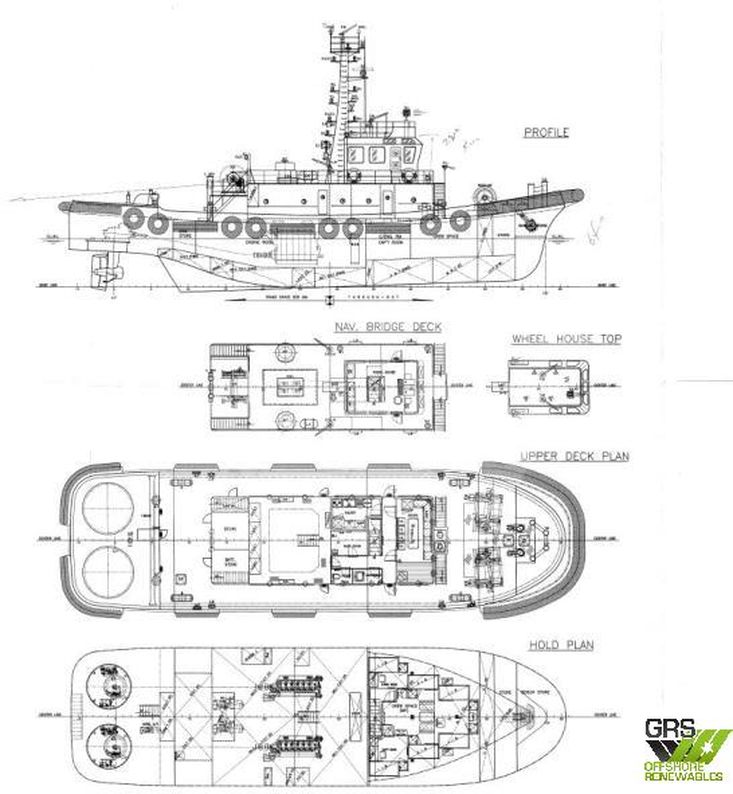 Engines : 2 x Niigata / Niigata Engineering Co Ltd 6L25HX, 2,644 kw, 750 rpm, Propellers 1 Z Type (Port Side) + 1 Z Type (Starboard)
